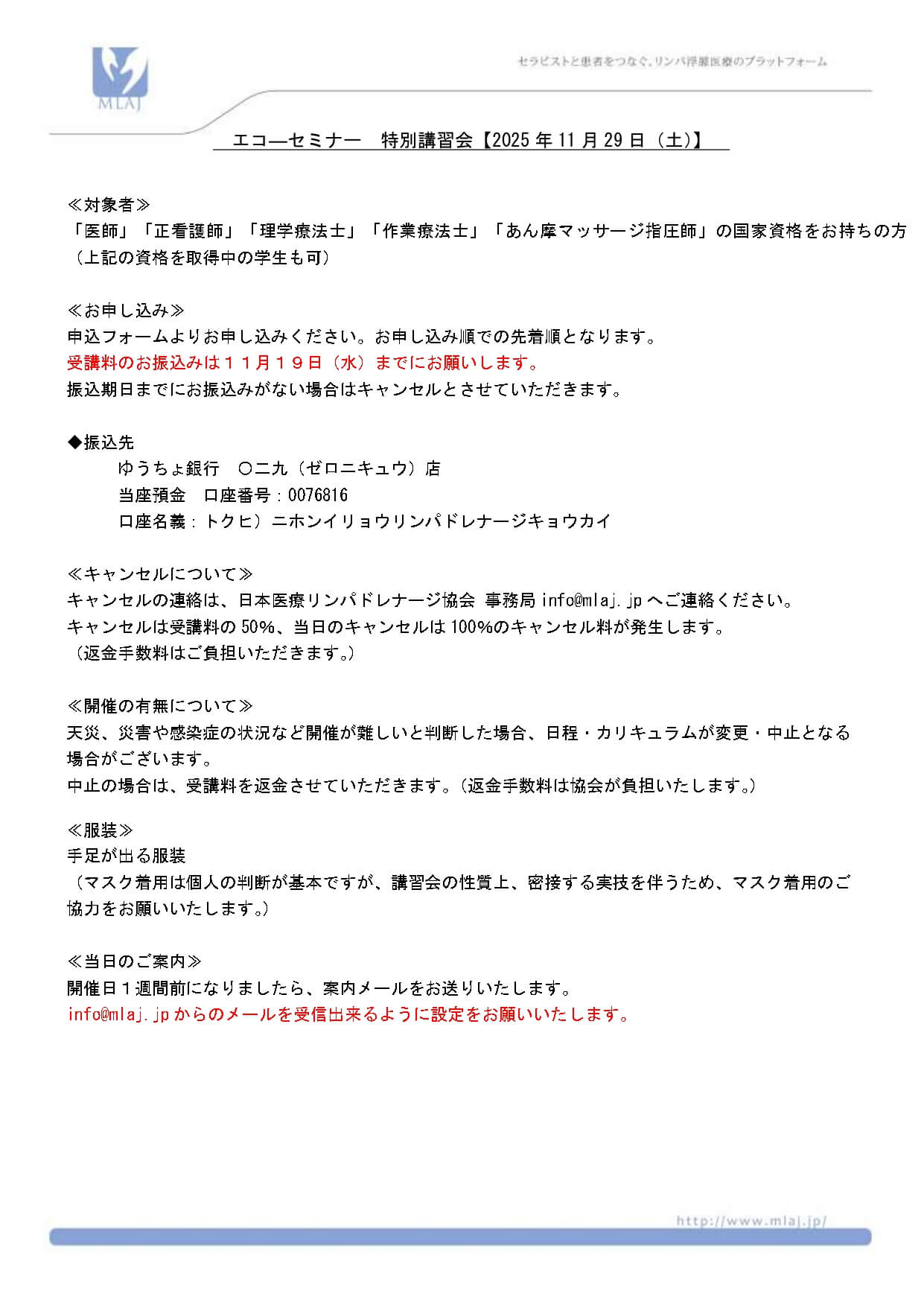 医療リンパドレナージセラピスト養成講習会(2025年度)
