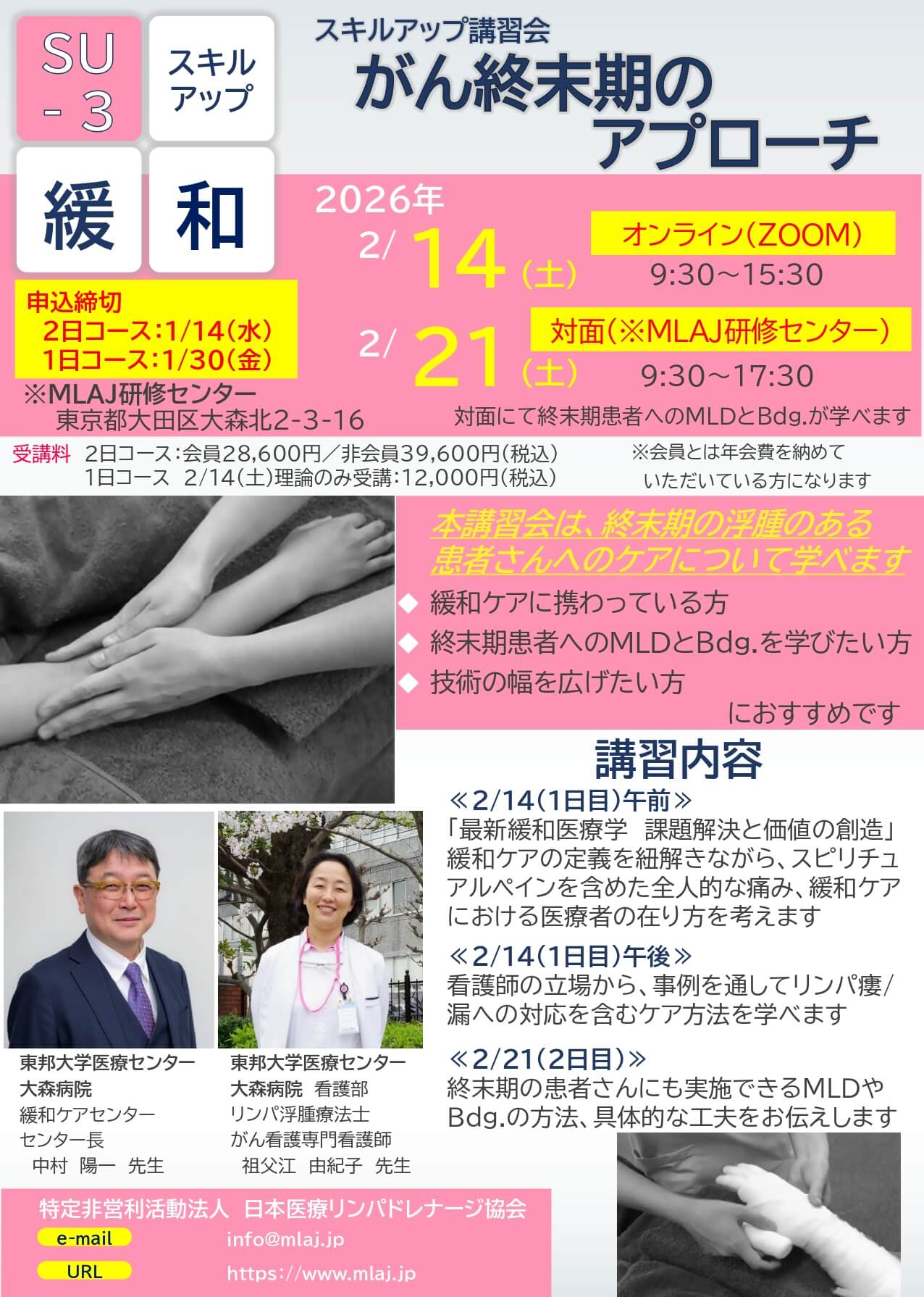 スキルアップ講習会【SU-3緩和】(理論1日・実技1日)