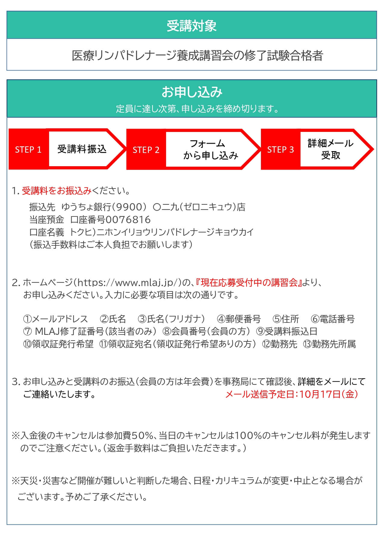 医療リンパドレナージセラピスト養成講習会(2025年度)