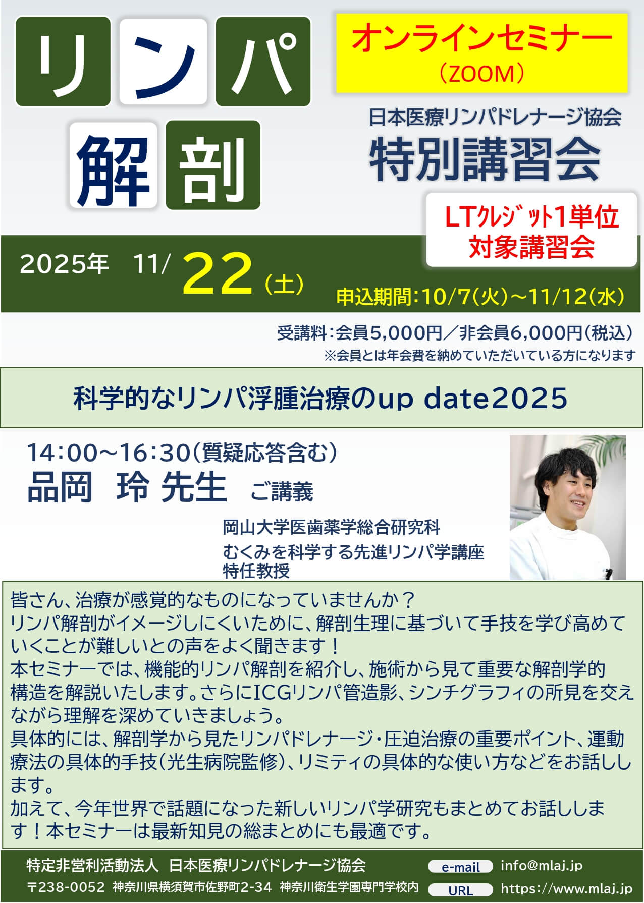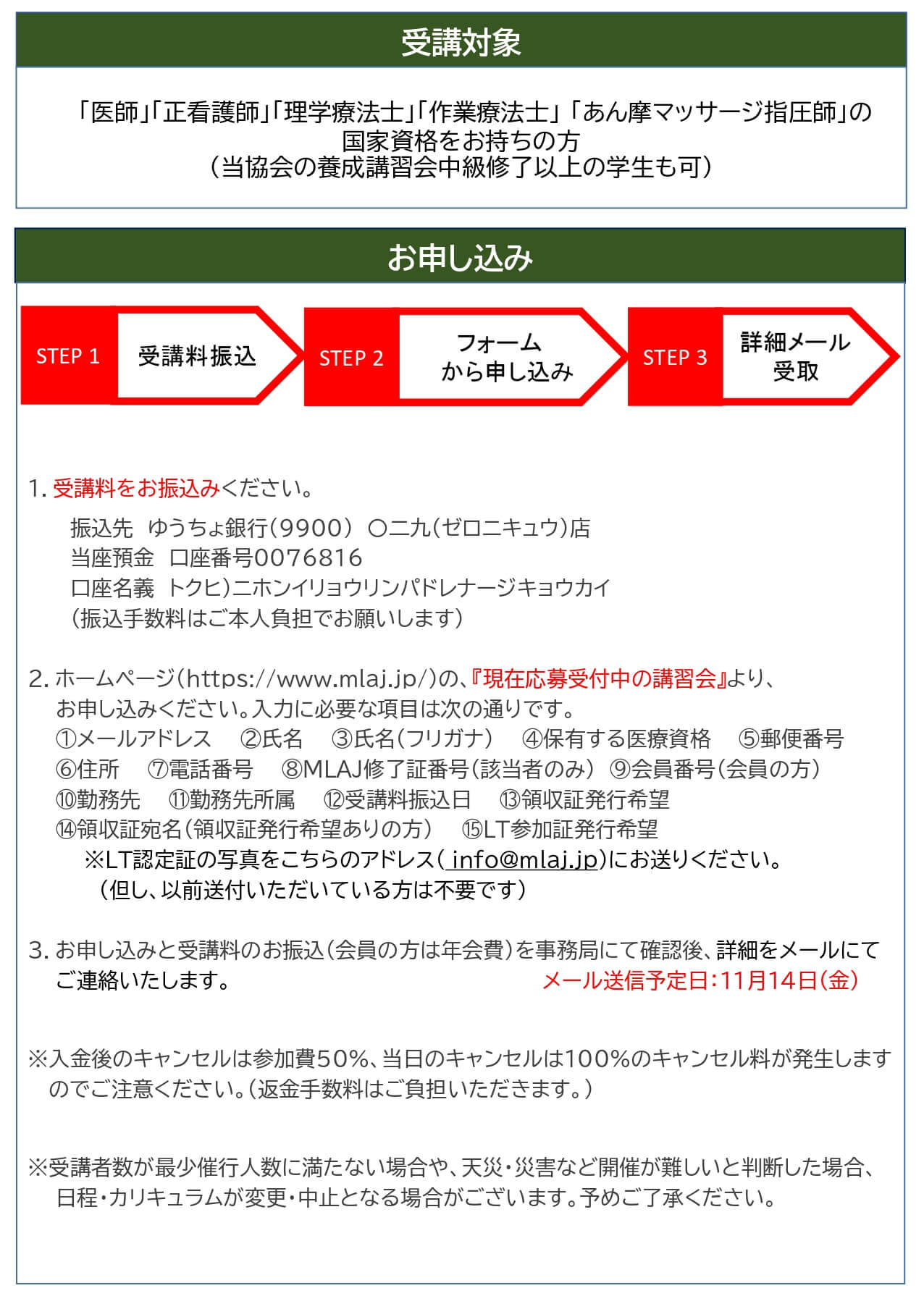 医療リンパドレナージセラピスト養成講習会(2025年度)